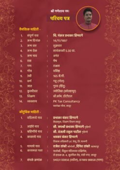 I am cluster head in education dept. My son son pankaj have own separate office of tax consultancy at basweshwar chauk latur. Our expectations are she is also completed graduation in any faculty or D farm or B farm or is helpful for tax consultancy and knowledge of computer . He is my own son and have own house in latur and have a shop and two plots in latur. Have one eker land in anand wadi. Ta shirur anant pal.